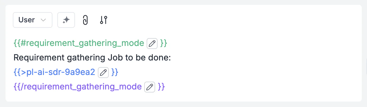 The Power of Conditional VariablesThis approach with {{#variable_name}} syntax lets you use a single template for three different purposes. When you set requirement_gathering_mode to “TRUE”, only that section appears. When you set it to empty and instead set research_mode to “TRUE”, the email drafting section appears instead. This keeps your templates DRY (Don’t Repeat Yourself).