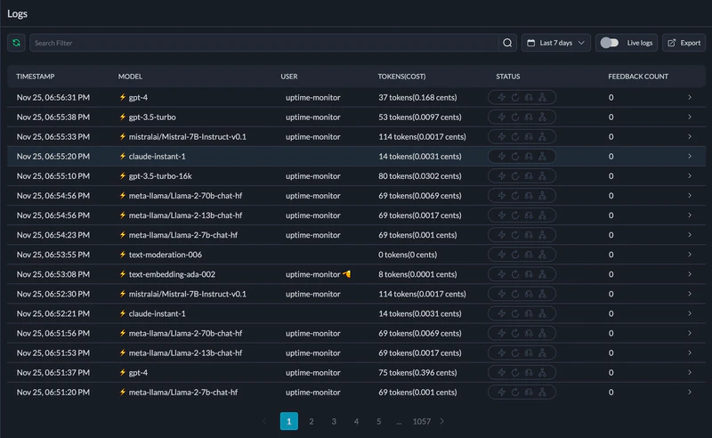 Portkey’s detailed logs and traces make debugging easy. You can see the complete execution flow, including failed tool calls, LLM errors, and retry attempts. Filter by trace ID or metadata to find specific issues.