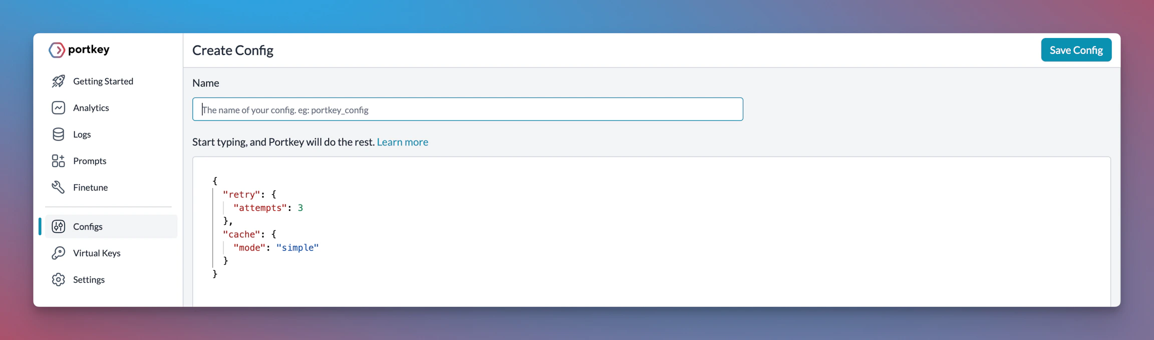 Many of these features are driven by Portkey’s Config architecture. The Portkey app simplifies creating, managing, and versioning your Configs. For more information on using these features and setting up your Config, please refer to the Portkey documentation.