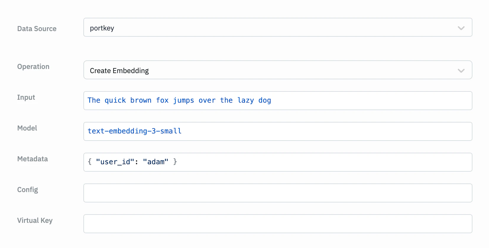 Generate embeddings for text.Parameters: Input, Model, Metadata
