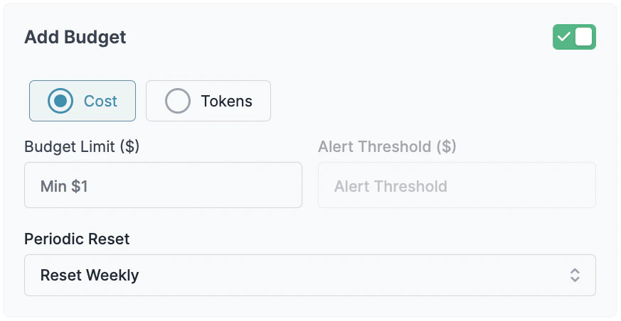 - Reset Weekly: Budget limits reset every Sunday at 12 AM UTC